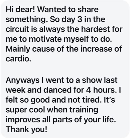 Learning her body and keeping up with our circuits gave her more stability, energy, and comfort while moving the ways she loves—so you can dance, play, mother, and move while enjoying your body and all the things she can do.