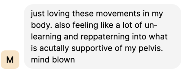 I am stronger, more confident and more connected to my legs, glutes, feet and posterior pelvic floor! My breathing has improve, along with my rib flare. With my body feeling better it has brought so much ease and alignment to my mind and spirit. This truly is wholistic well woman care!”